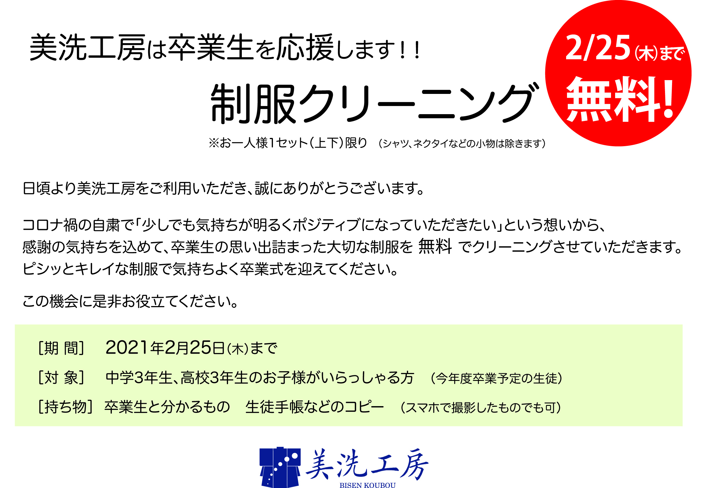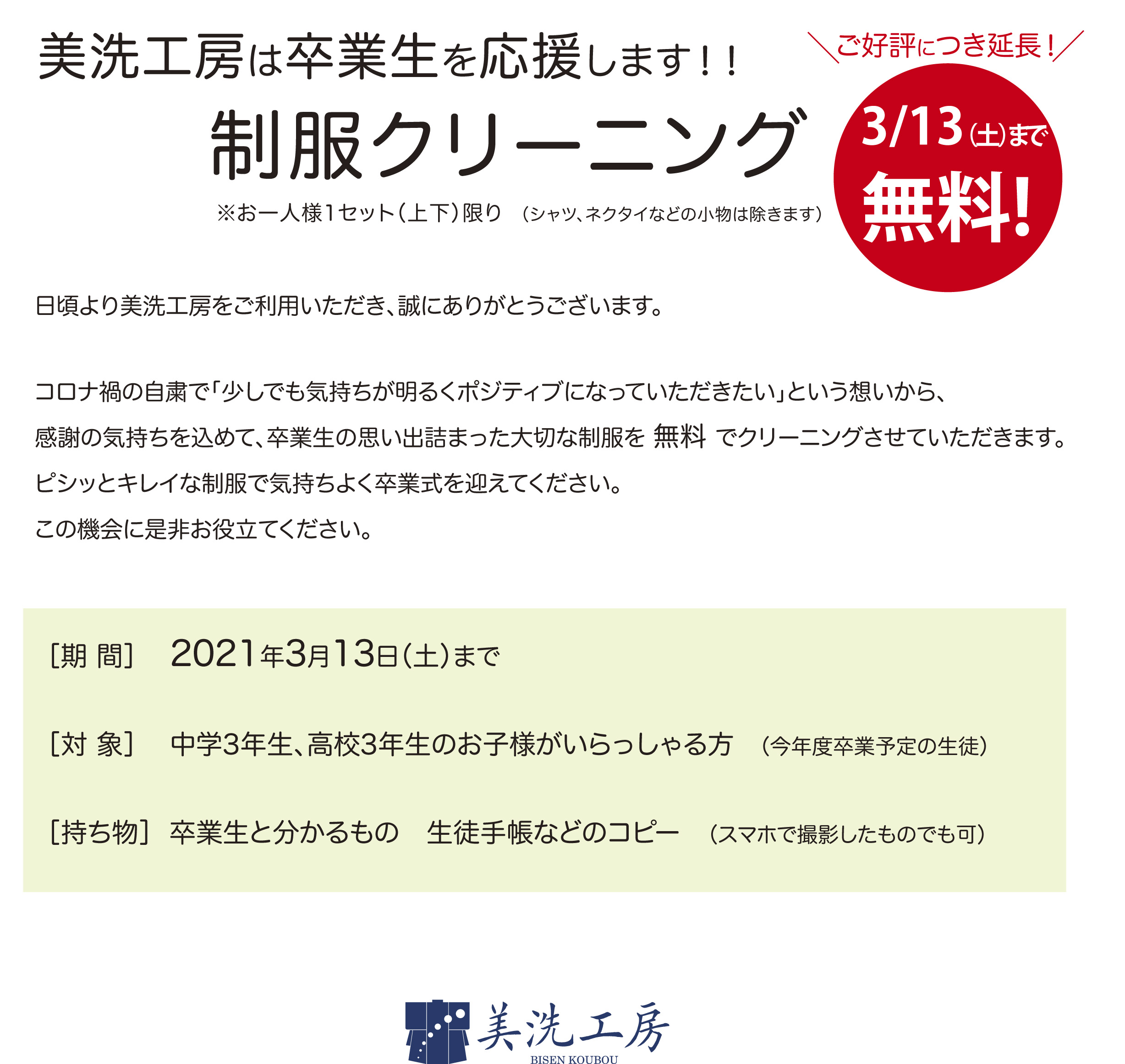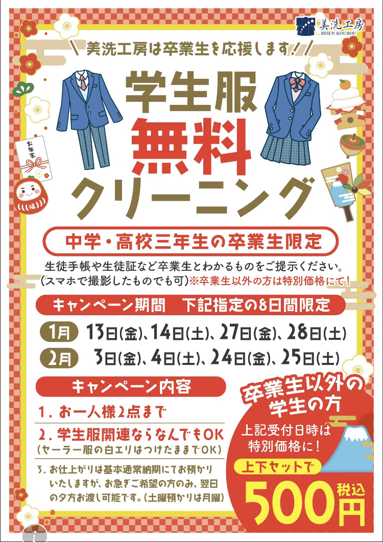年内仕上がり最終受付日は一般衣類12/25(木)、寝具類など12/24(水)までとなります。